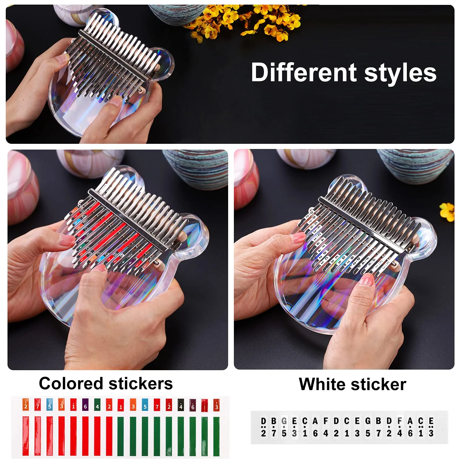 Transparent 17-Key Crystal Bear Shape Kalimba Thumb Piano