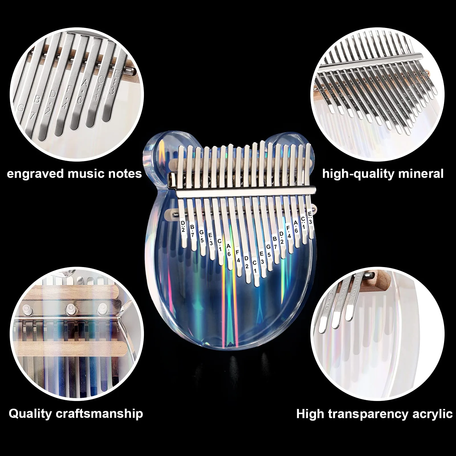 Experience enchanting melodies with our Transparent 17-Key Crystal Bear Shape Kalimba, a professional instrument.