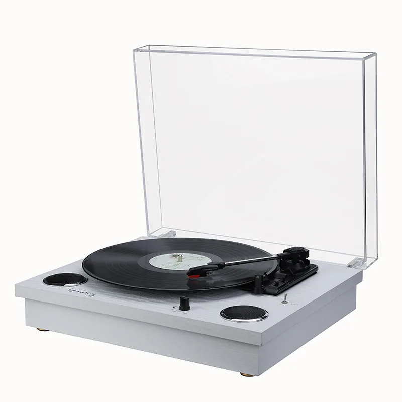 • Speeds: Three-speed turntable (33/45/78 RPM) for versatile record playback.